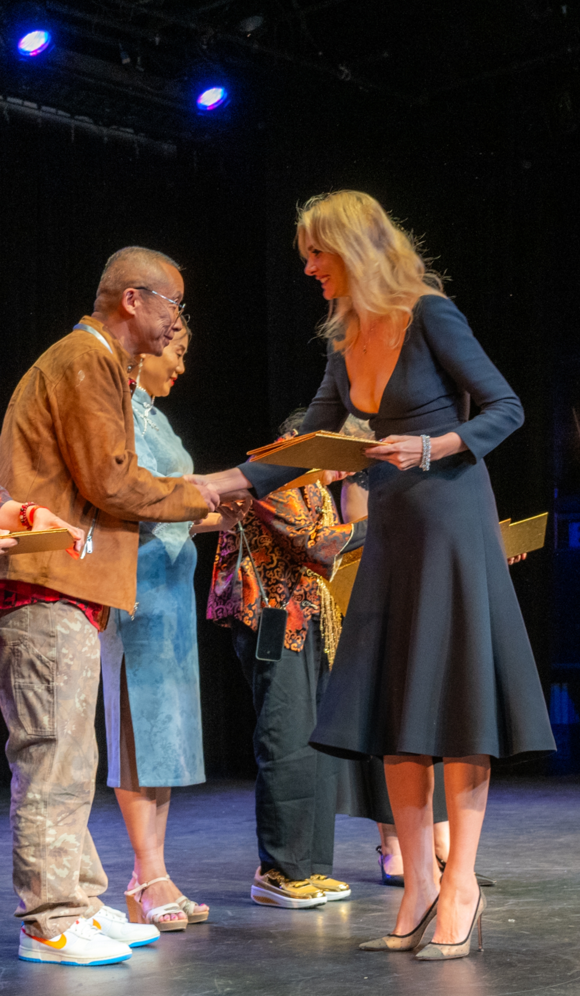 The evening gala at the Broadway Theatre featured a high-caliber audience of filmmakers, authors, and cultural figures. The atmosphere was marked by strong enthusiasm for film and culture, complemented by artistic performances, including a notable piano solo by Dr. Tingting Wu. The successful execution of the festival was attributed to its organizing committee, including the efforts of Chief Planner Sunny Zhang, the coordination and design contributions of Dr. Ellen Qiongzhao, a noted sculptor who also designed the awards, and the participation of international producer Ms. Xiaodong Cao, known for her involvement in numerous Academy Award-affiliated films.