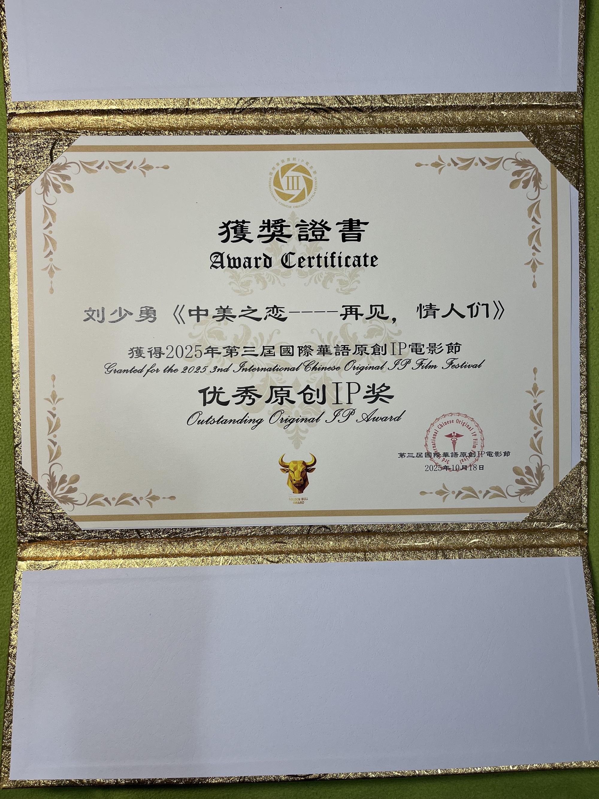 NEWYORK, NY, UNITED STATES, November 4, 2025 /EINPresswire.com/ — Liu Shaoyong, a prominent best-selling author, inventor, and entrepreneur from China, was honored with the “Outstanding Original IP Award” for his work, “Sino-American Love: Goodbye, Lovers.” The award was presented during the gala of the 3rd International Chinese Original IP Film Festival & 1st New York AI International Film Festival, held at the Broadway Theatre in Manhattan on October 18, 2025.
