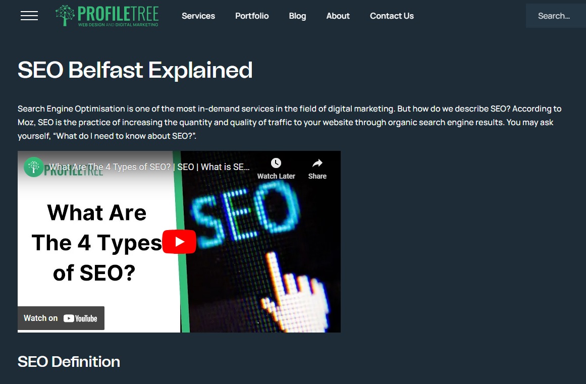 ProfileTree is a digital agency based in Belfast, Northern Ireland, offering web design, SEO, content marketing, video production, and digital training services. Founded by Ciaran and Michelle Connolly, the agency serves clients across Northern Ireland, Ireland, and the UK. ProfileTree’s YouTube channels have collectively reached over 1.4 million subscribers and 40 million views.