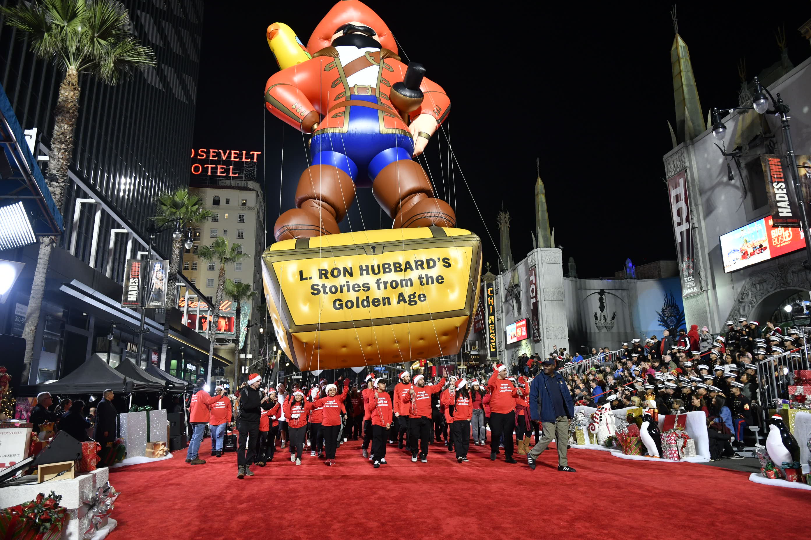The five-story-tall Captain Tom Bristol depicting L. Ron Hubbard’s “Under the Black Ensign” in the Hollywood Christmas Parade.