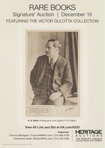 DALLAS, TX, UNITED STATES, December 11, 2025 /EINPresswire.com/ — Heritage Auctions will present a Rare Books Signature Auction on December 15th featuring The Victor Gulotta Collection of H. G. Wells, described as “a deeply personal and meticulously assembled library reflecting a collector’s lifelong admiration for one of the giants of modern literature.”