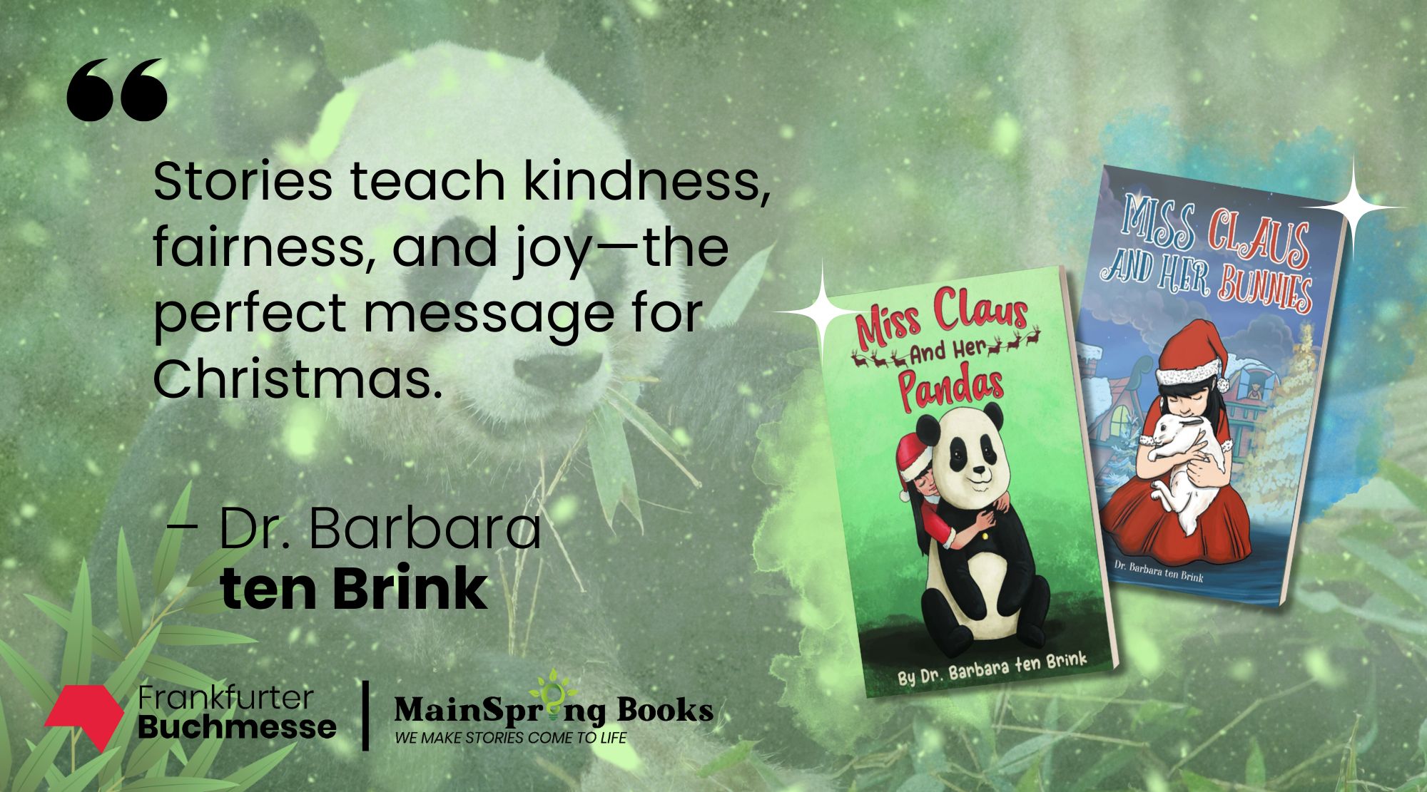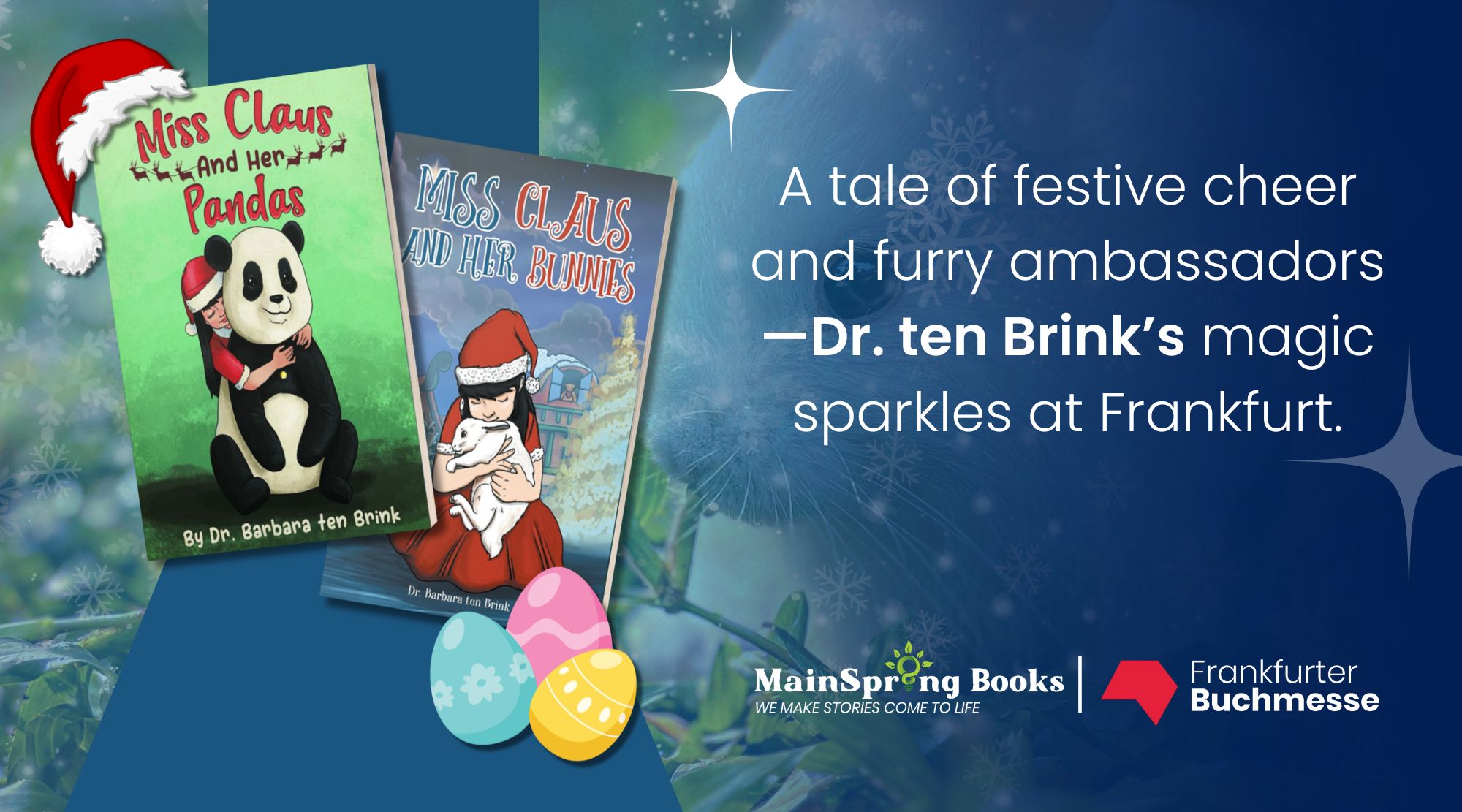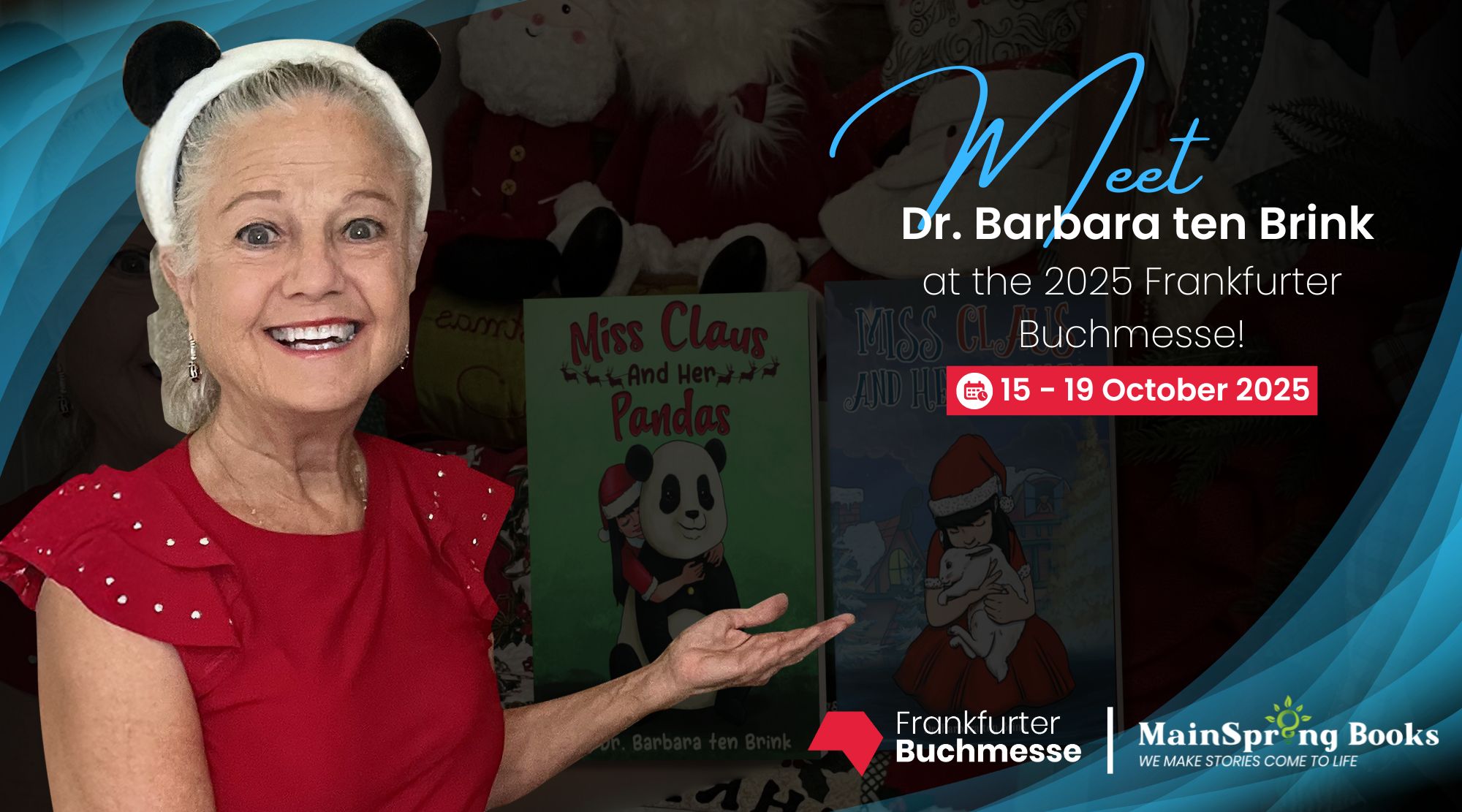 LOS ANGELES, CA, UNITED STATES, October 7, 2025 /EINPresswire.com/ — MainSpring Books is delighted to share that Dr. Barbara ten Brink, a prolific author with more than 20 published works spanning multiple genres, will be featured at the 2025 Frankfurt International Book Fair (Frankfurter Buchmesse). Known for her creativity and range, she will introduce her latest children’s Christmas book, Miss Claus and Her Pandas, continuing the whimsical adventures that have delighted young readers and families around the world. Fairgoers can connect with Dr. ten Brink herself, who will share the inspirations behind her work and personally sign complimentary copies of her book.