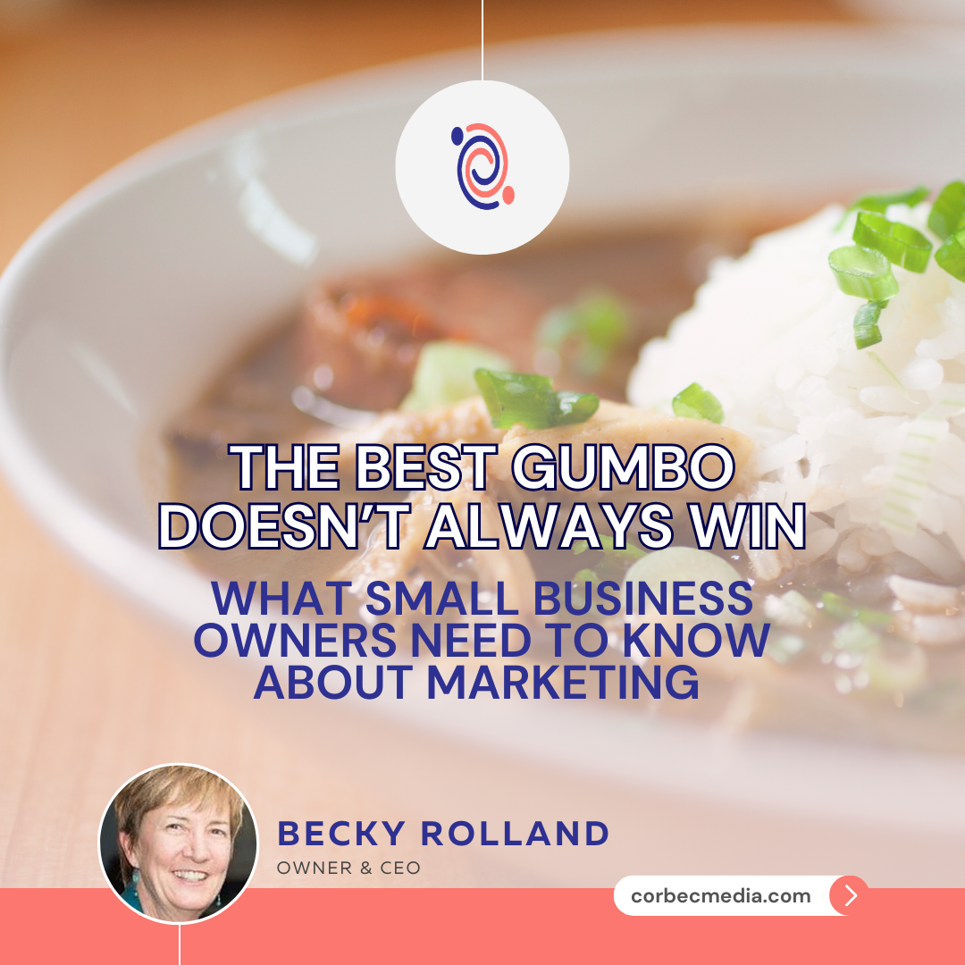 NEW ORLEANS, LA, UNITED STATES, April 7, 2026 /EINPresswire.com/ — Becky Rolland, owner of Corbec Media, will present “The Best Gumbo Doesn’t Always Win” on April 8 at the Stronger Together BNI group at Juniors on Harrison at 789 Harrison Avenue, New Orleans, LA. The presentation will offer offer small business owners a clear, practical guide to navigating today’s marketing landscape. The event is free, however registration is required.