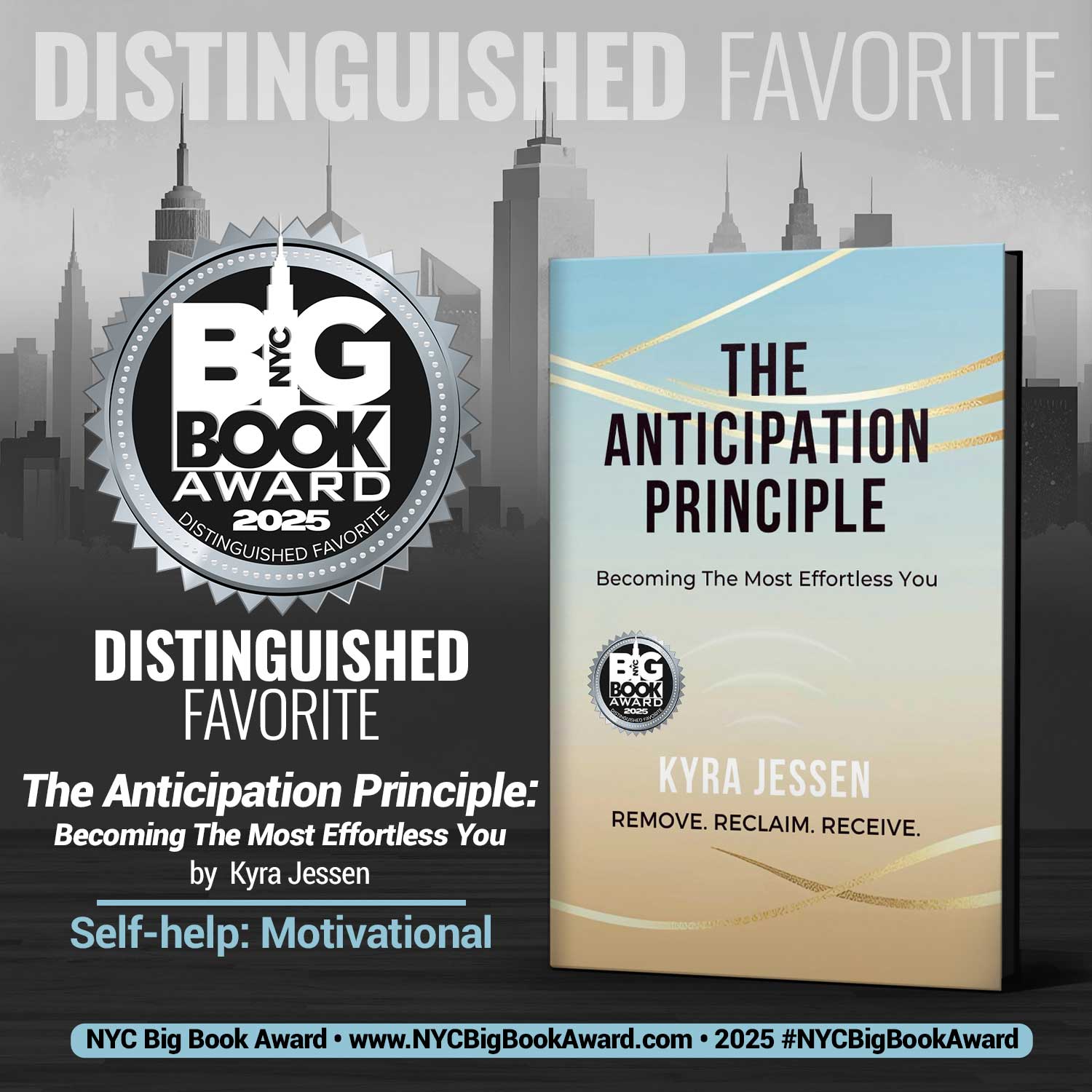 HAMBURG, GERMANY, September 25, 2025 /EINPresswire.com/ — The 2025 NYC Big Book Award recognized “The Anticipation Principle: Becoming The Most Effortless You” by Kyra Jessen in the category of Self-help: Motivational as a distinguished favorite. Jessen’s debut, just released some four months ago, was one of only two Germany-based authors who received the prestigious international NYC Big Book Award this year.