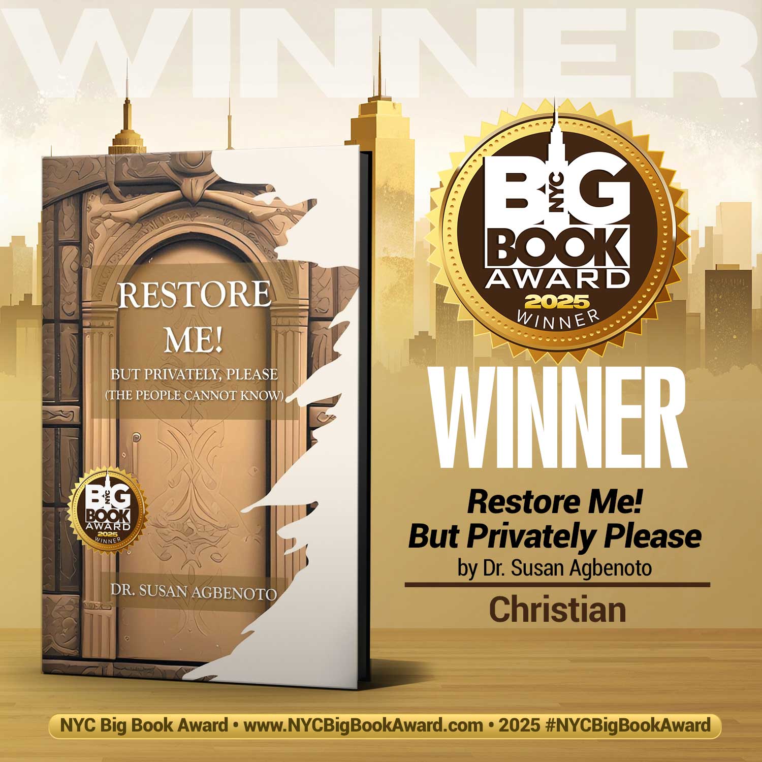 SANFORD, FL, UNITED STATES, September 26, 2025 /EINPresswire.com/ — The 2025 NYC Big Book Award recognized “Restore Me! But Privately Please” by Dr. Susan Agbenoto in the Christian category as the winner.