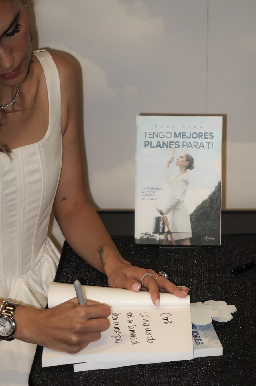 “No nací para quedarme en la queja. Nací para accionar, para servir, para inspirar. Por eso escribí ‘Tengo mejores planes para ti: la fórmula de orar, creer y accionar’, que seguramente te ayudará a hacerte preguntas de calidad para crecer y transformarte. Hoy no es un día más, es un día menos para cumplir tu propósito, aplicando lo que me enseñó mi padre Roque: lo que empieza, se termina”, afirmó Eddy Vera durante el evento.
