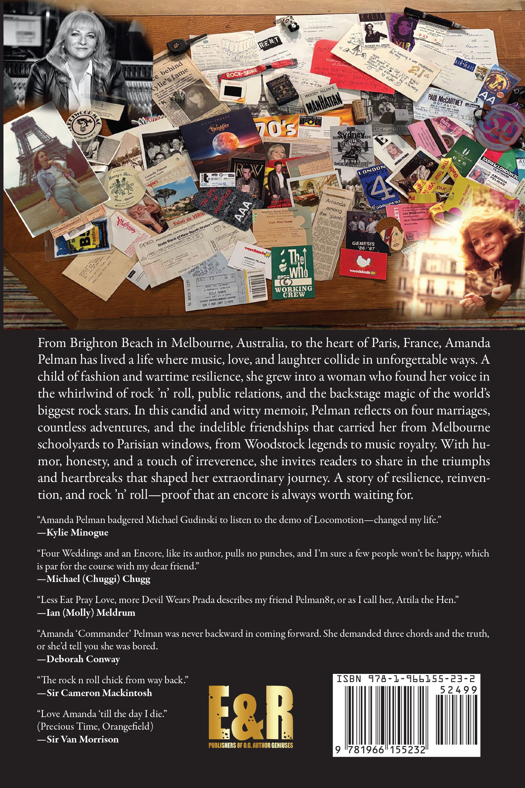 Australian concert promoter and industry figure Michael Chugg AM, who pens the foreword, describes Pelman as “a rare woman” whose honesty and creativity helped pave the way for others. “Like the author herself,” he writes, “Four Weddings and an Encore pulls no punches.”