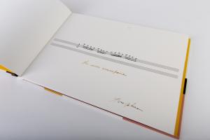 Created in a strictly limited edition of 150 copies, Boulez – Hommages is a monumental handcrafted artist’s book conceived as an intimate tribute to one of the most influential musical figures of the 20th century. It was at the center of the exhibition at the New York Philharmonic in fall 2025, celebrating 100 years since the birth of the great composer and orchestral conductor, who served as Music Director of the New York Philharmonic from 1970 to 1977. Rather than a conventional biography, it gathers personal reflections, each signed in the original, from leading cultural figures (from Daniel Barenboim to Renzo Piano), alongside rare, previously unpublished photographs, offering a deeply human portrait. Each volume, printed on exceptional handmade paper and individually bound, stands as a unique sculptural object that unites memory, craftsmanship, and artistic homage.
