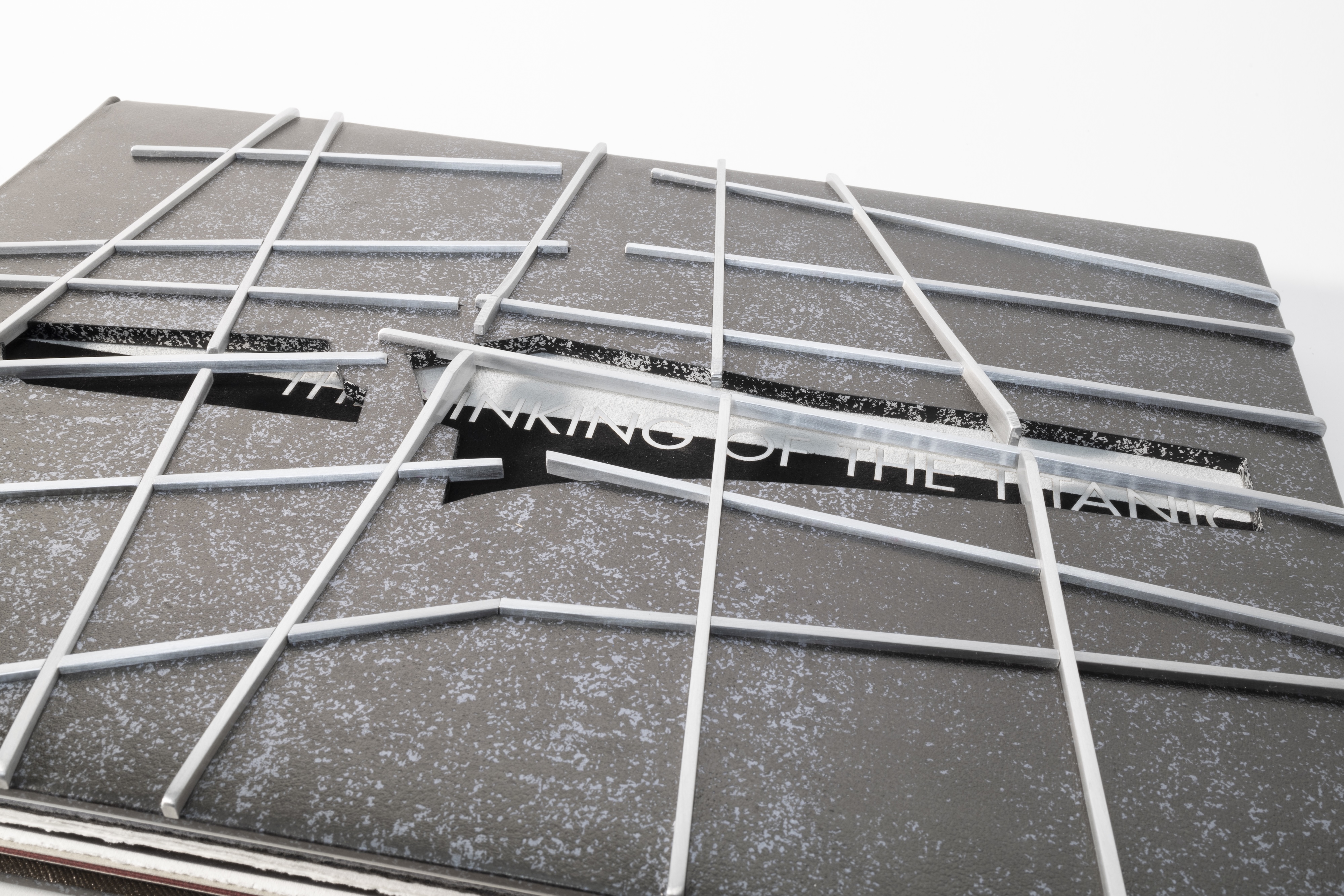 This artist’s book transforms the haunting story of the Titanic’s final moments into a powerful visual and tactile experience. It is the book transposition of The Sinking of the Titanic, the musical work by Gavin Bryars written in 1969—the first composition inspired by the Titanic story—imagining the ship’s orchestra playing as it sank. Luigi Castiglioni reinterprets this narrative through typography, color, and texture, evoking sound dissolving into the depths. Fragments of memory, imagined echoes, and striking visual interventions—enhanced by the original etchings of the Spanish artist Cristina Iglesias—converge into a poetic meditation on loss, resonance, and the fragile persistence of human expression.