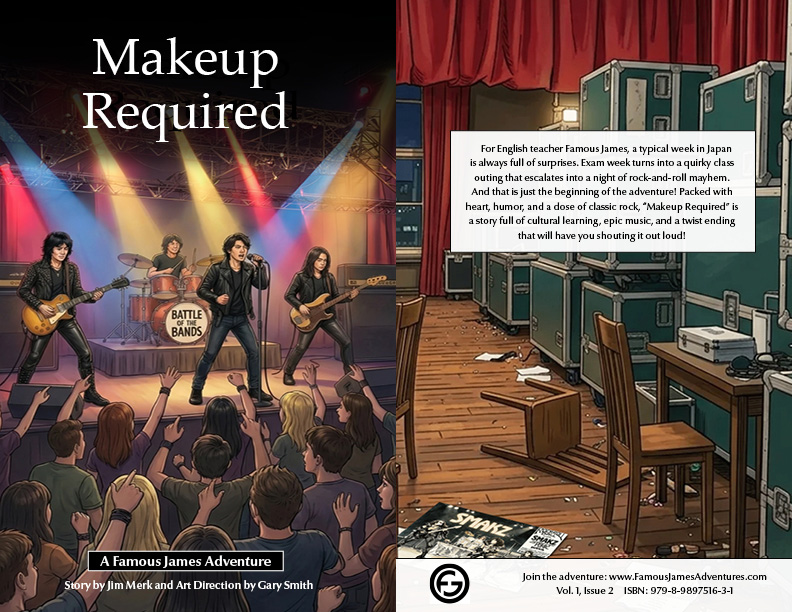 LOS ANGELES, CA, UNITED STATES, March 31, 2026 /EINPresswire.com/ — Yoimono LLC today released Makeup Required, the second illustrated short story in the Famous James Adventures series. The story follows an English teacher and his adult students through a week of exam prep, a battle of the bands competition, and a crazy request from the owner.