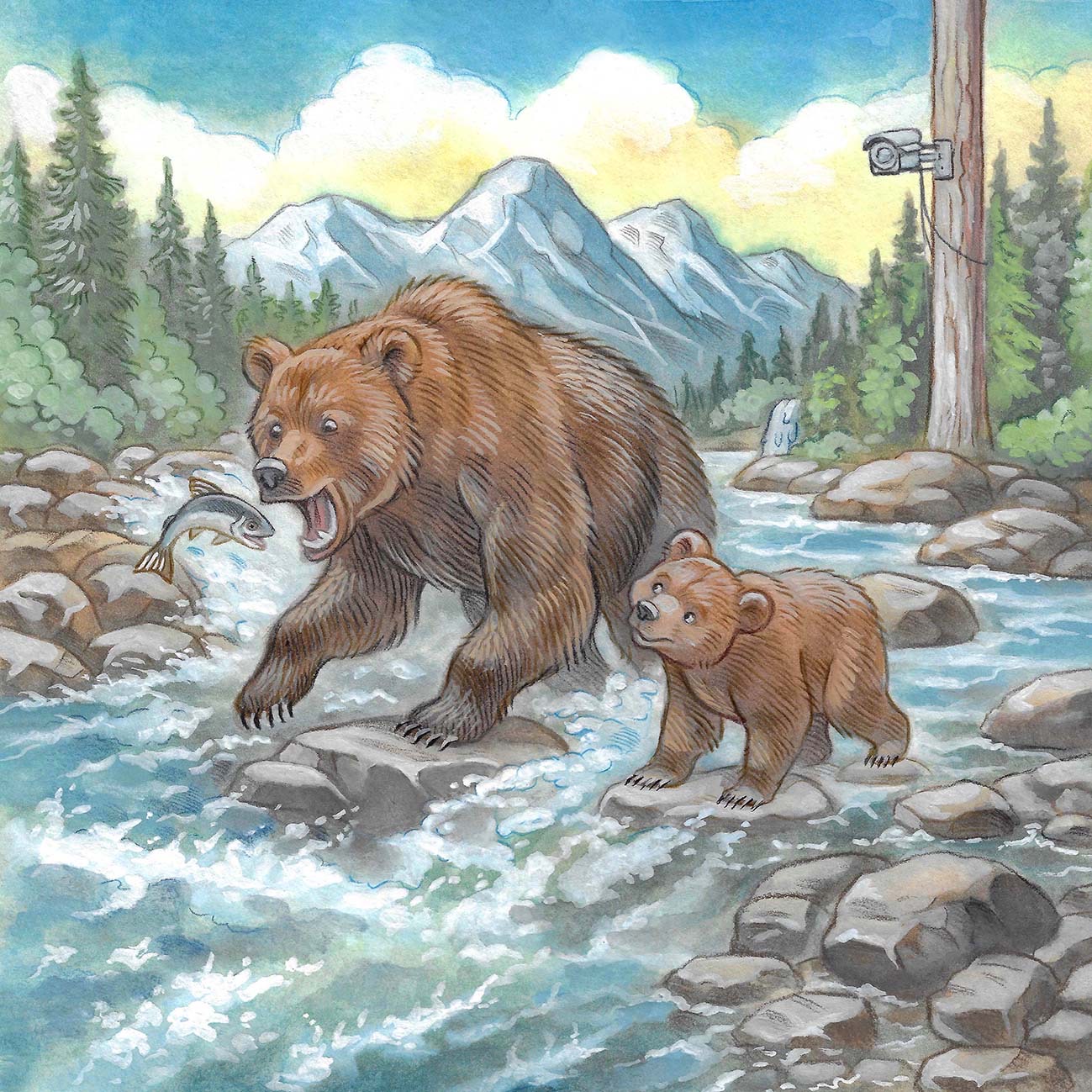 Inspired by real bears and real national parks, the story is set in Banff National Park and follows a young grizzly cub learning how to navigate the mountain environment alongside his mother. While gentle and imaginative in tone, the narrative reflects real‑world wildlife behaviors and reinforces the importance of giving animals space and observing them respectfully.