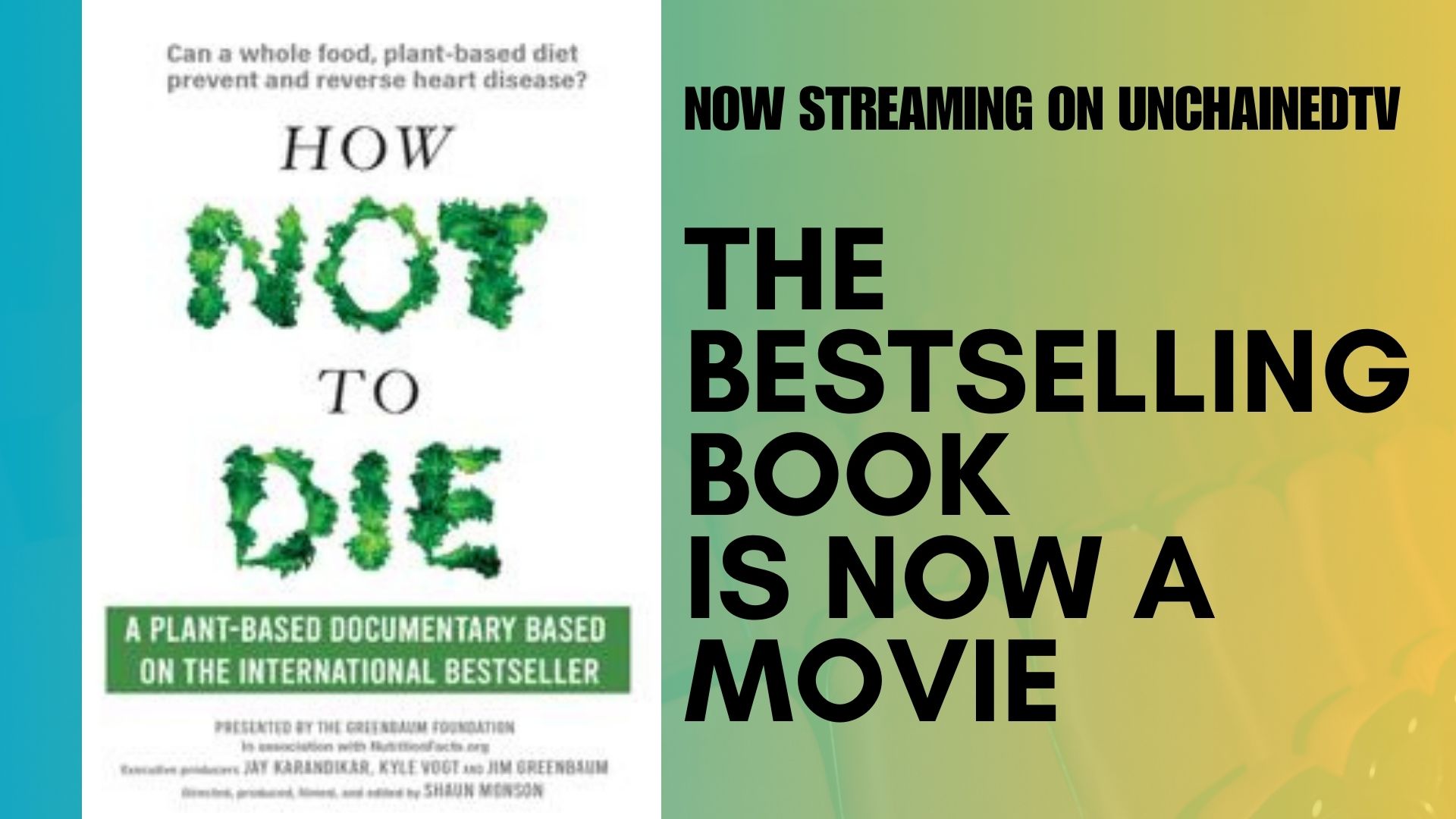 UnchainedTV is a free, nonprofit streaming TV network dedicated to promoting a healthy, sustainable, plant-based lifestyle and offers this film to the public without any fee. UnchainedTV’s President, Jane Velez-Mitchell, says, “The crucial information in this powerful, meticulously researched documentary can help people avoid preventable lifestyle diseases and improve their chances of living a long and healthy life. What could be more important than that?”
