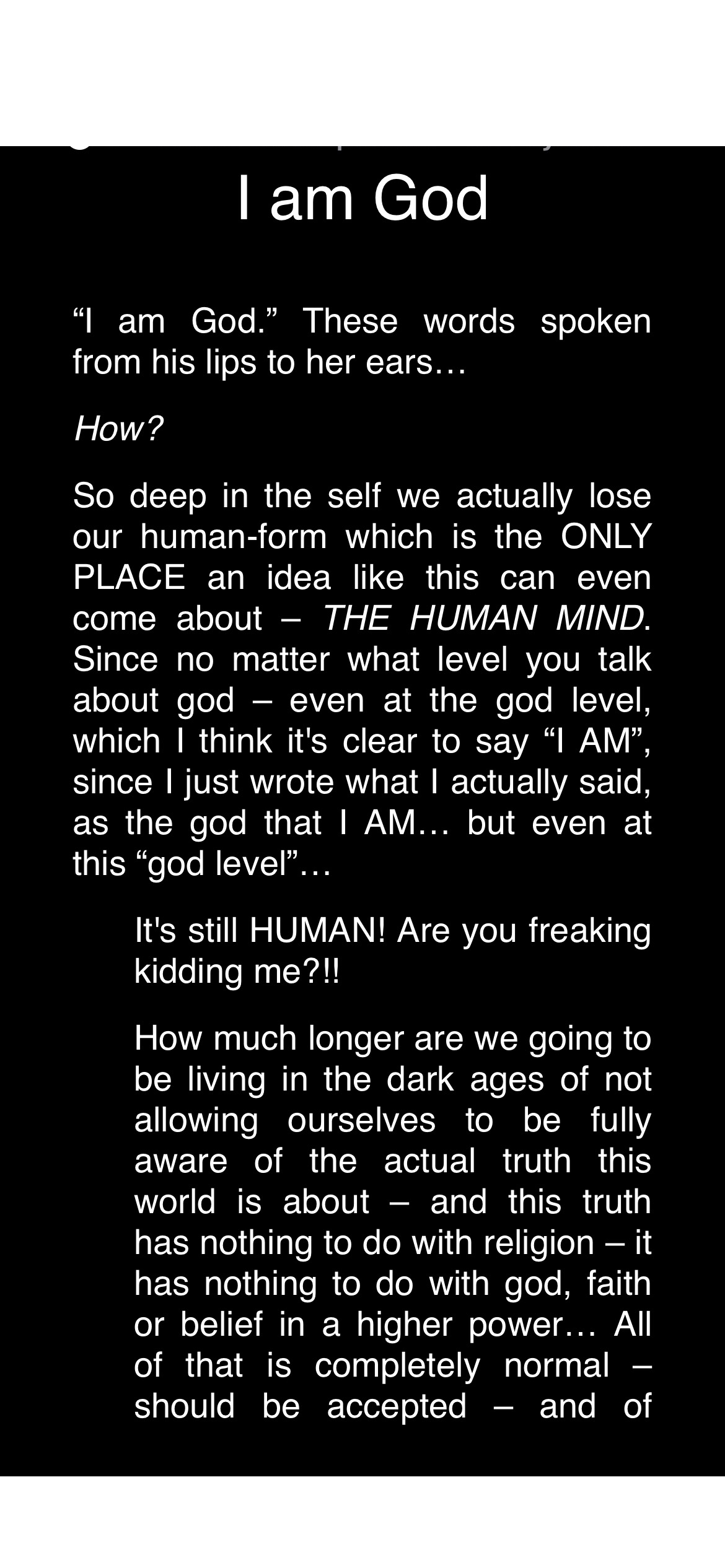 “Is it truly ‘psychotic’ for a human being to claim they are God, or to know God? Is it really ‘tragic’ to dwell in the ethereal spaces where higher consciousness, spirituality, and existential understanding converge? My work doesn’t avoid these questions; it embraces them. Through deep introspection and philosophical exploration, I seek to bridge the impossible gap between higher-dimensional thought and the tangible human experience,” explains Gale.