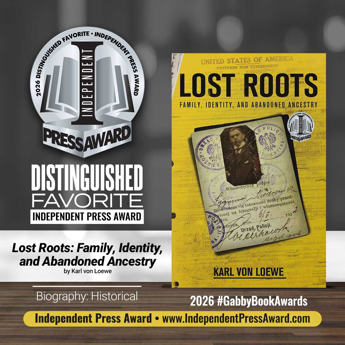 SOMERSET, NJ, UNITED STATES, January 22, 2026 /EINPresswire.com/ — The 2026 Independent Press Award recognized “Lost Roots: Family, Identity, and Abandoned Ancestry” by Karl von Loewe in the category of Biography: Historical as a distinguished favorite.
