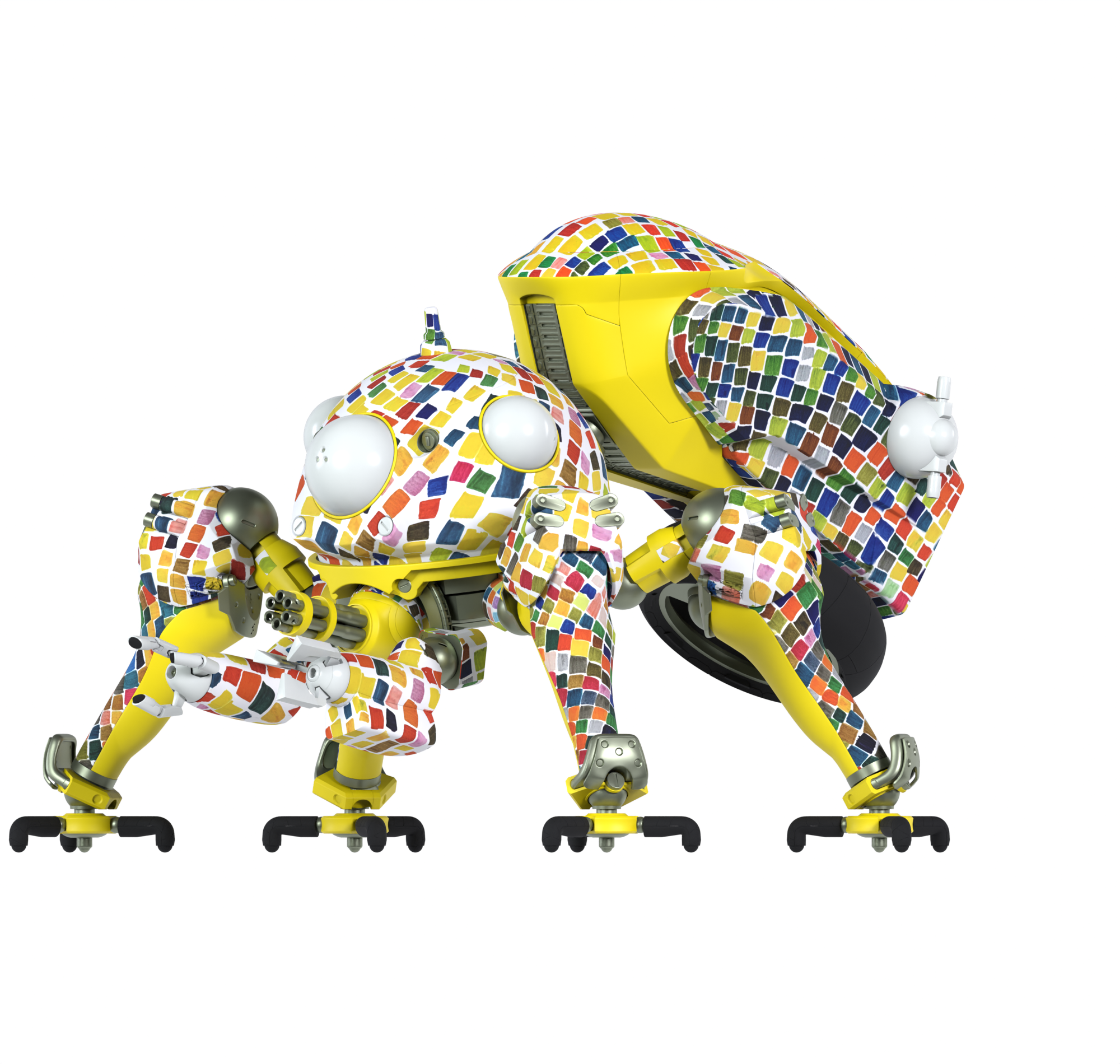 In this collaboration, four HERALBONY’s contracted artists use their original art to decorate figures of Tachikoma, a character from the anime series of KODANSHA’s hit sci-fi series THE GHOST IN THE SHELL.