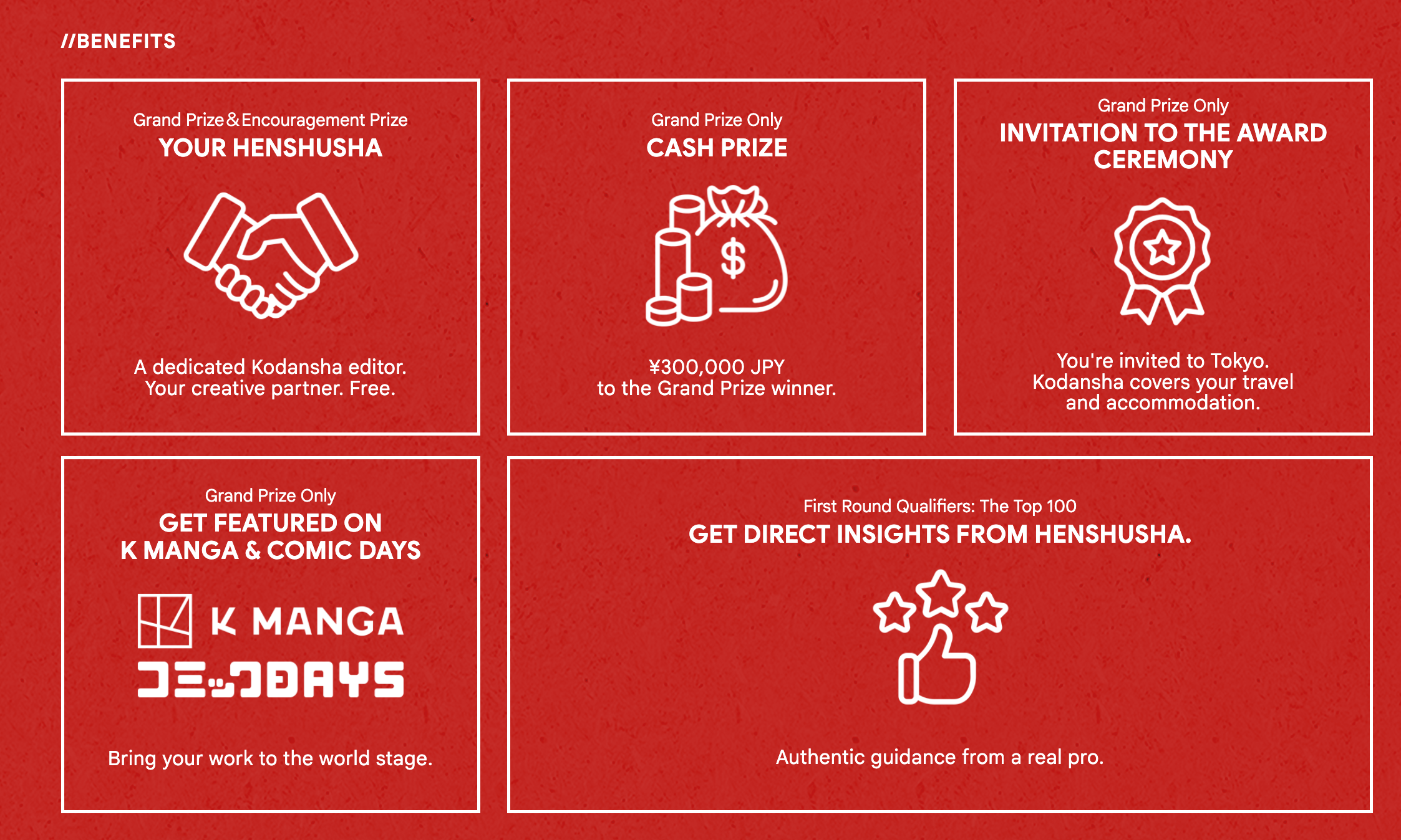 How to Apply: manga-academy.kodansha.com/award/mangaka-discovery/