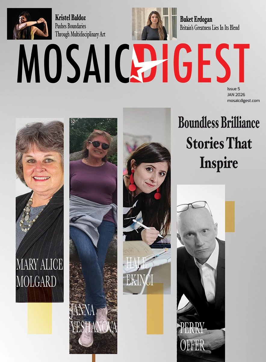 Mosaic Digest is a global publication dedicated to amplifying unique voices and diverse perspectives. Covering a broad range of fields, from literature and art to business and fashion, the magazine reaches readers in over 190 countries through print and digital platforms. Dive into the conversations that matter by exploring Mosaic Digest’s latest issue.