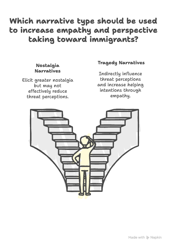 “Tragedy narratives, compared to nostalgia narratives, were able to evoke more empathy for the narrator, which further led to reduced realistic and symbolic threat perceptions as well as increased intention to help the Muslim family.”