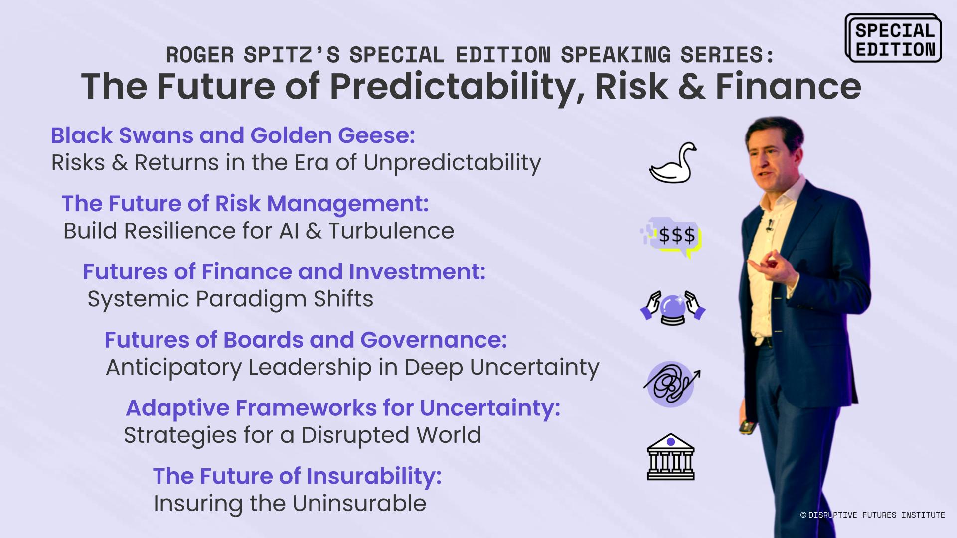 • Special Edition – The Future of Predictability, Risk & Finance: A timely keynote series decoding the future of risk, investments, and insurance for global financial stages and boardrooms.