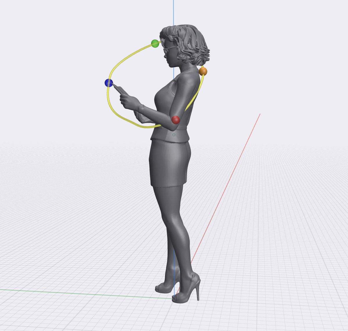 The printing operator moves along the dots—red (elbow opening), orange (mood), green (audio), blue (visual)—aboutness vector changing voice rapidly alongside spatially cyclic access