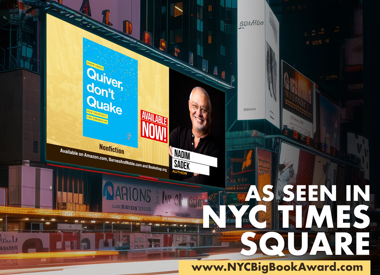The billboard also rolls out the first outdoor campaign showcasing some key partners and sponsors of BookCAMP 2026, which takes place April 24-26 in Newark, NJ. The Saturday BookCAMP’s ending keynote is set to be delivered by Nadim Sadek, CEO of Shimmr AI. His new book being showcased at Frankfurt Book Fair next week “Quiver, Don’t Quake: How Creativity Can Embrace AI” argues for an optimistic and collaborative alliance between human creativity and artificial intelligence, reframing AI not as a competitor but as a partner that helps humanity innate creativity.