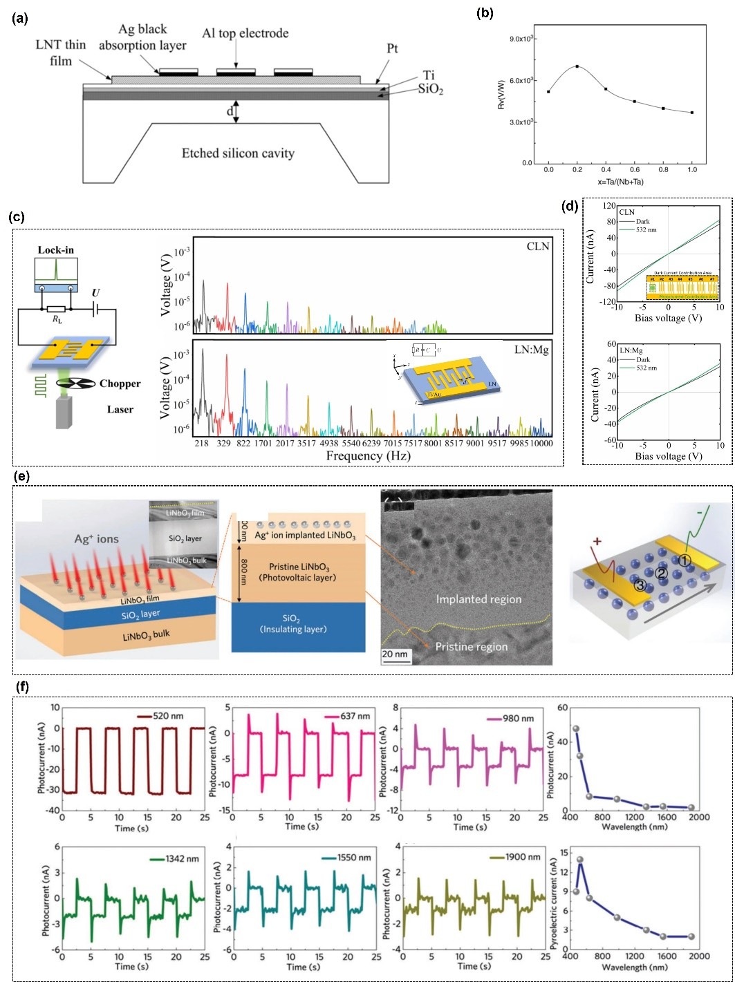 The emergence of Lithium Niobate on Insulator (LNOI) technology has broken this bottleneck, achieving a technological innovation from bulk LN materials to Thin-Film Lithium Niobate (TFLN) structures. As a result, TFLN has garnered significant attention in current research on integrated photonics and integrated nonlinear photonics. As a core component for converting optical signals to electrical signals, photodetectors play a key role in integrated photonic applications. However, the inherent weak optical absorption of LN makes it difficult to achieve detection. Although recent reports have proposed feasible solutions to this problem through ion doping and heterogeneous integration, the full integration of high-performance detectors in TFLN still faces many challenges.