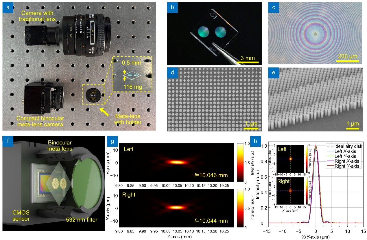 To address the challenges of traditional DIC systems, Prof. Mu Ku Chen from the City University of Hong Kong, along with Prof. Shengxian Shi and Prof. Fei Qi from Shanghai Jiao Tong University, proposed a novel Meta-lens DIC technology. This research integrates advanced optical meta-lenses with traditional DIC techniques. Compared to conventional stereo systems, the binocular meta-lens camera developed in this study is more compact and integrated. The research team implemented a pair of meta-lenses and integrated them into a CMOS sensor, creating a compact binocular meta-lens camera. This camera is significantly smaller than those equipped with a single commercial lens, and the binocular meta-lens itself weighs only 116 mg, much lighter than commercial lenses.