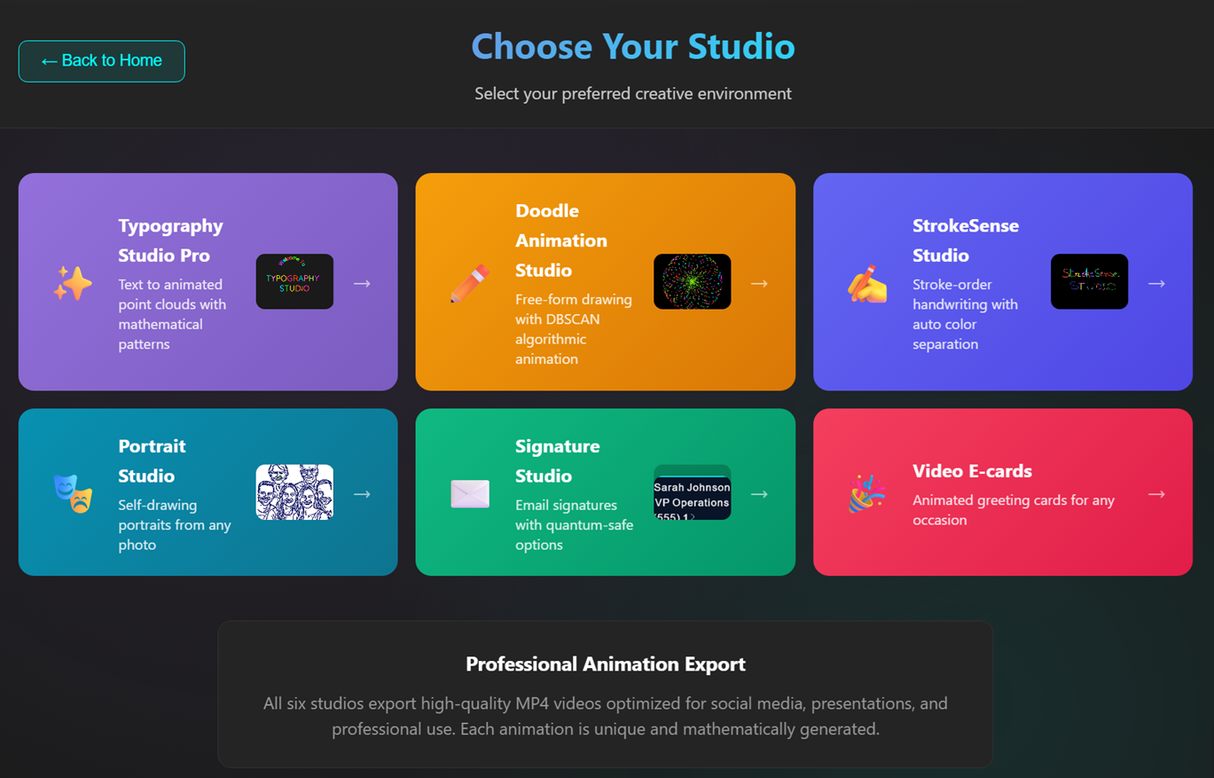Transform content into living mathematical animations. Watch your creations draw themselves point-by-point.