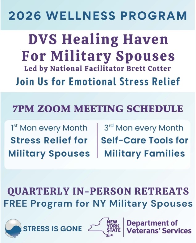 ALBANY, NY, UNITED STATES, December 19, 2025 /EINPresswire.com/ — ALBANY, NY – The New York State Department of Veterans’ Services (DVS) proudly announced the launch of Healing Haven for Military Spouses, a first-of-its-kind statewide peer-to-peer initiative designed specifically to support the spouses of Service Members and all who served. Healing Haven provides a confidential, accessible, and supportive environment for Military Spouses to gather, learn, share, and strengthen their personal well-being.