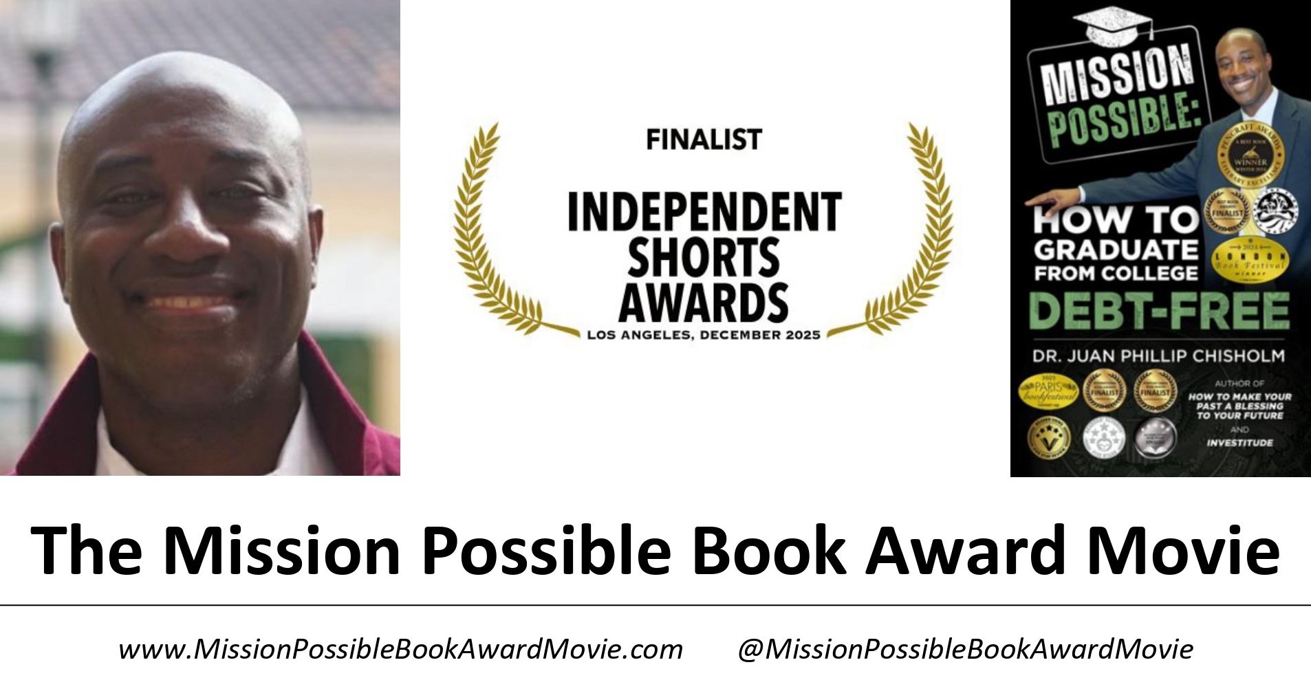 Documentary Director and award-winning author, Dr. Juan Phillip Chisholm shared that “It’s an honor to see my work celebrated as it speaks to the impact of Mission Possible: How to Graduate from College Debt-Free and I am honored to receive this ‘Finalist’ recognition.”