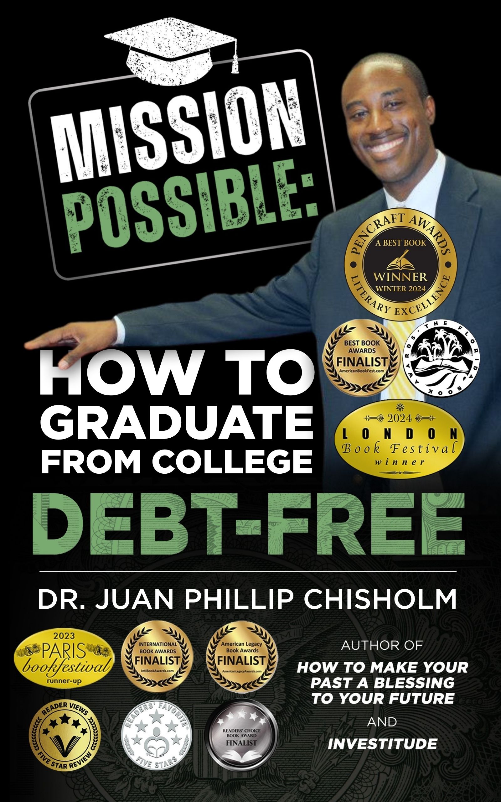 Dr. Juan Phillip Chisholm is a native of Jacksonville, Florida, a graduate of Florida State University, and a twelve (12) time Internationally Acclaimed Award-Winning Author, a 2025 Distinguished Favorite Winner from the prestigious Independent Press Award for Overall Excellence, Winner of the 2024 prestigious PenCraft Book Awards for Literary Excellence for Winter’s Best Book for Young Adults, and a 2024 prestigious London Book Festival Award Winner in the “How To” Category based on his book, Mission Possible: How to Graduate From College Debt-Free. Dr. Chisholm is also a proud recipient of a Bronze Medal from the Florida Book Awards, received an acknowledgement from the Paris Book Festival as a “Runner-Up” as an author in the Young Adult Category, and is an “International Book Award Finalist” for Mission Possible. Dr. Chisholm has also received national recognition from the American Book Fest as a “Finalist” for its Annual Best Book Awards in the College Guide category for his book, Mission Possible: How to Graduate From College Debt-Free.