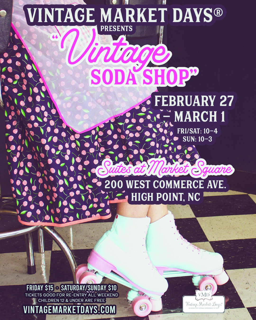 HIGH POINT, NC, UNITED STATES, January 16, 2026 /EINPresswire.com/ — The Piedmont Triad Vintage Market Days® spring show is only 6 weeks away and will feature a fun vintage Soda Shop theme, running from 10:00 am on Friday, Feb 27, through 3:00 pm on Sunday, March 1, at the Suites at Market Square in High Point. The spring show will also feature a special bonus, when guests pre-purchase tickets, where they will enjoy early access to the Vintage Market Days event, plus receive exclusive swag bags for the first 25 guests each day on Friday and Saturday, filled with goodies, coupons, and treats from our amazing vendors.