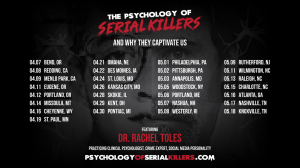 LOS ANGELES, CA, UNITED STATES, March 4, 2026 /EINPresswire.com/ — Serial violence remains one of the most misunderstood categories of criminal behavior. How does someone commit repeated acts of extreme harm and still move through daily life without detection for years? The Psychology of Serial Killers (www.psychologyofserialkillers.com) invites audiences beyond the headlines and into the behavioral, developmental, and psychological pathways that can precede serial homicide. Hosted by Dr. Rachel Toles, a clinical and forensic psychologist specializing in extreme violence and threat behavior, the national tour launches April 7 and will visit nearly 30 cities across the U.S. through May 18, including Philadelphia, Atlanta, Portland, Charlotte, Nashville, and more.