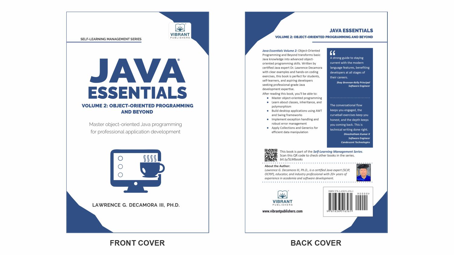 COLORADO, CO, UNITED STATES, January 20, 2026 /EINPresswire.com/ — Vibrant Publishers is thrilled to announce the release of Java Essentials Volume 2: Object-Oriented Programming and Beyond, a comprehensive guide that bridges the gap between basic Java programming and professional software development. Authored by certified Java expert Dr. Lawrence G. Decamora III, the book provides students, self-learners, and junior developers with essential skills for building robust, real-world applications.