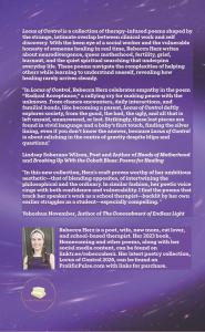 Lindsay Soberano Wilson calls the poem “Radical Acceptance” a “rallying cry for making peace with the unknown,” noting how the collection finds meaning in what remains unsaid or unresolved.